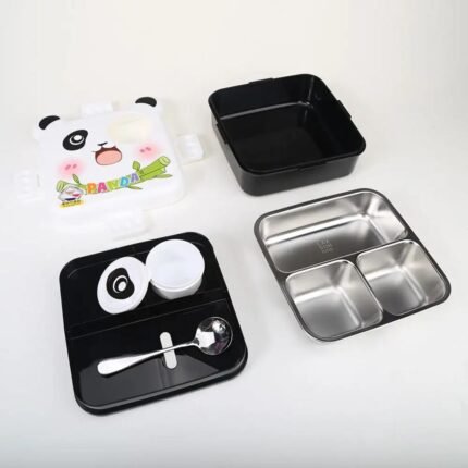 The Creative Panda Steel Lunch Box features a cute panda-themed design with a sturdy stainless steel interior. It keeps food
