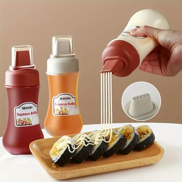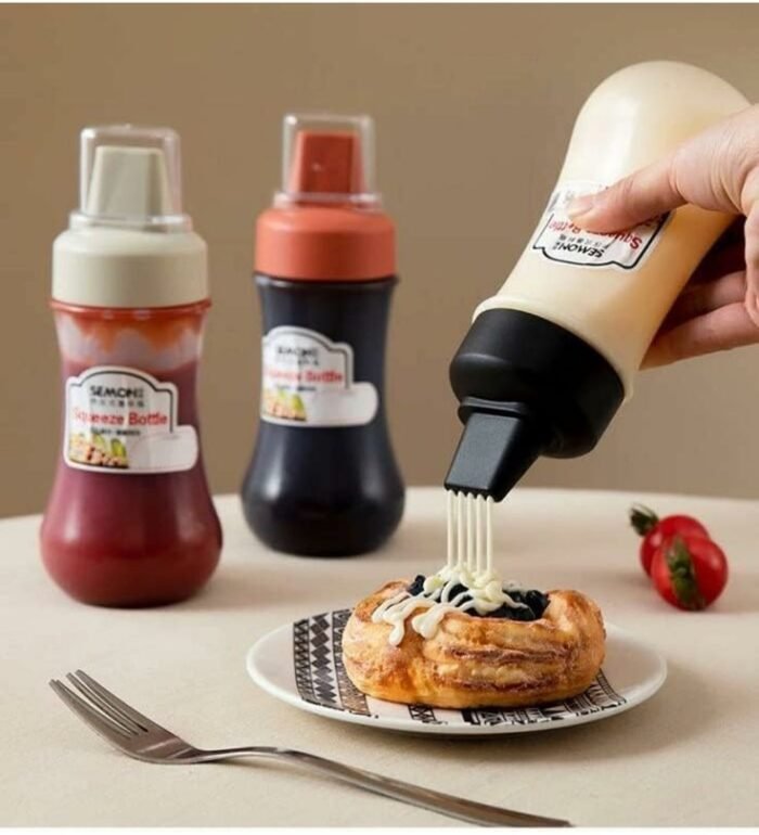Innovative condiment dispenser designed for even, efficient application of your favorite sauces. Featuring a unique five?hole nozzle, this leak?proof bottle ensures precise and uniform drizzle?ideal for dressings, oils, ketchup, mustard, and more. Made from food?grade plastic with a wide?mouth refill design, it combines convenience and control for kitchens, barbeques, or professional use.