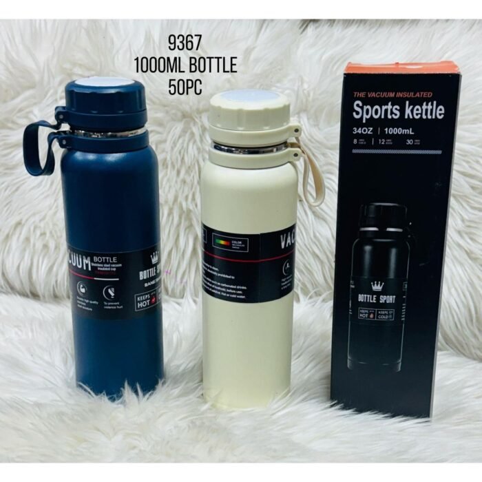 The 9367 1000ml Stainless Steel Flask Bottle offers excellent insulation to keep your beverages hot or cold for hours. Its sleek, durable design makes it ideal for daily use, travel, gym, or office hydration needs.