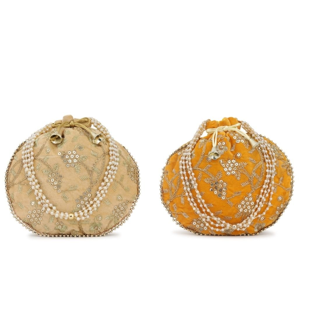 Combo – Designer Embroidered Potli Bag – Yellow & Beige