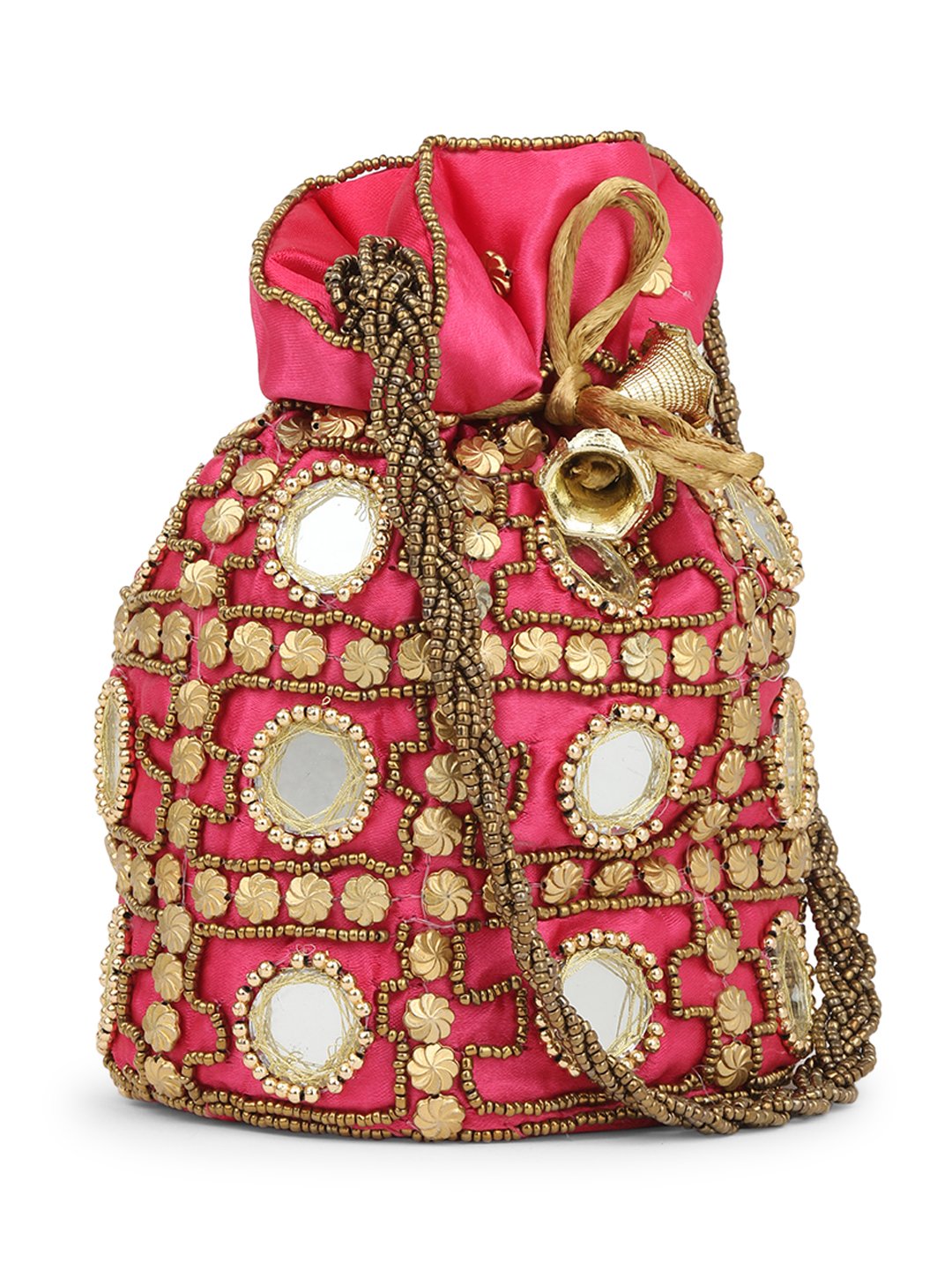 Gold-toned embellished potli clutches Has wrist loop 1 main compartment with drawstring closure