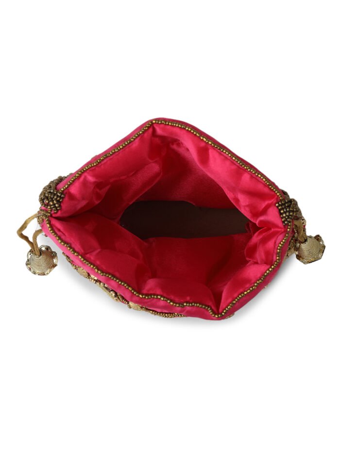 Red and gold-toned embellished potli clutches Has wrist loop 1 main compartment with drawstring closure Size & Fit Height: 18