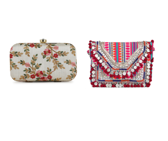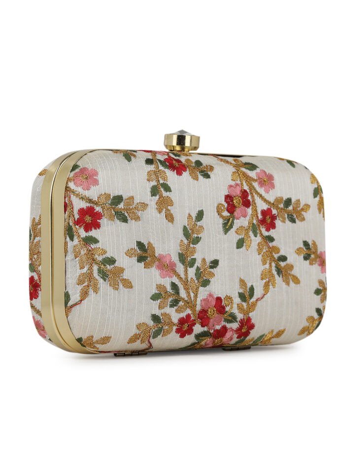 Combo Of Boho Bag And Off White Embroidered Box Clutch For Girls and womens