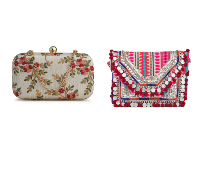 Combo Of Boho Bag And Off White & Gold Embroidered Box Clutches For Girls and womens(01)