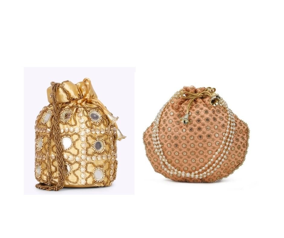 This product is a combo of tow Embellished potli bags having wrist loop 1 main compartment each with drawstring closure. Size & Fit Size of each potli bag : 9 x 9 x 3 Inch (Length x Width x Depth ) Material & Care Fabric Wipe with clean, dry cloth