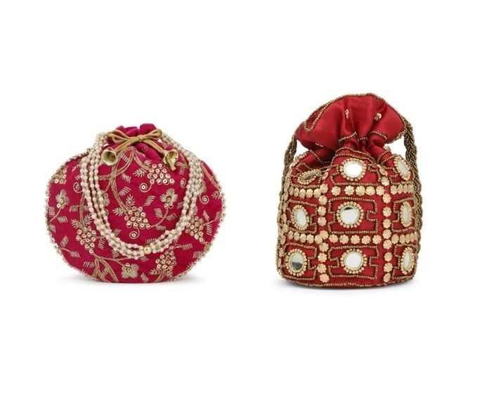Combo – Designer Embroidered Potli Bag – Golden & Red