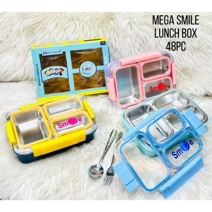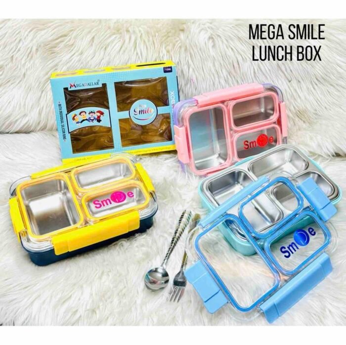 The Mega Smile Lunch Box adds a cheerful touch to mealtime with its bright smiley design. Spacious and practical, it?s perfect for school, office, or picnics, keeping meals fresh and organized in a fun, durable container.