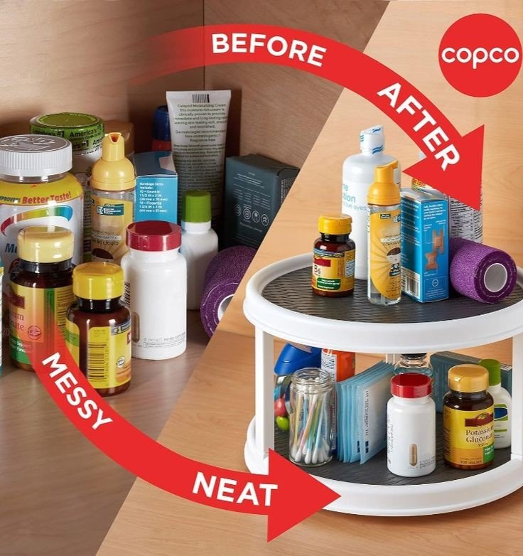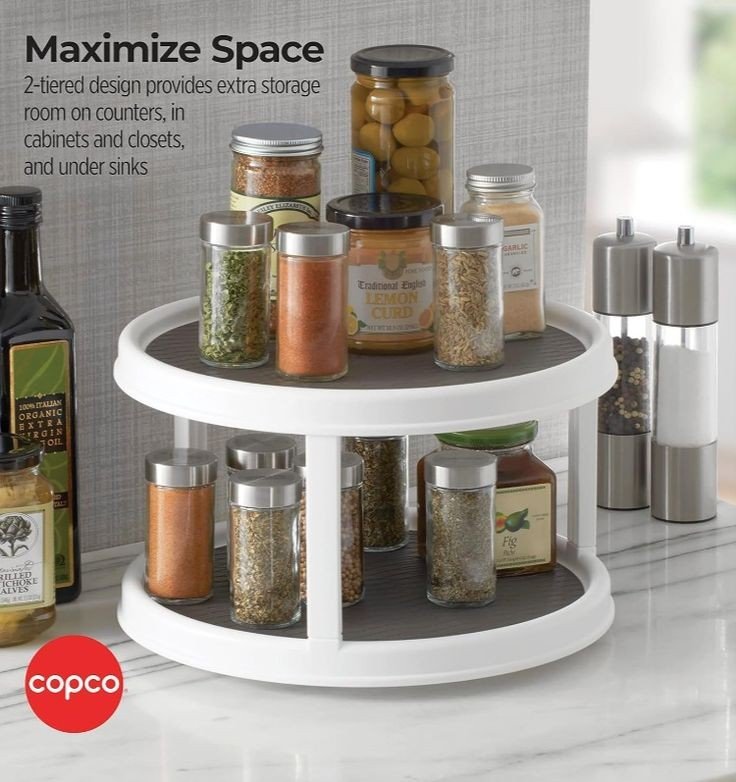 Home New Arrivals Rotating Double Layer Tray ? Ideal for Spices, Snacks, Bathroom, and Office Use