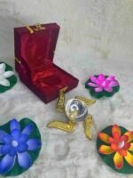 A beautifully crafted brass oil lamp featuring the auspicious Swastik symbol, this premium diya blends traditional spirituality with elegant design. Ideal for daily puja, festive rituals like Diwali and Navratri, and as a thoughtful gift, it brings positive energy, prosperity, and warmth to any sacred or home space.